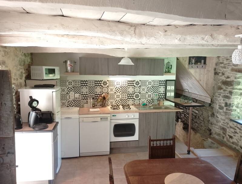 Hébergement tout confort pour 6 personnes, deux grandes chambres avec lits simples et double, salle d'eau et cuisine équipée, grande terrasse, salon de jardin et BBQ.